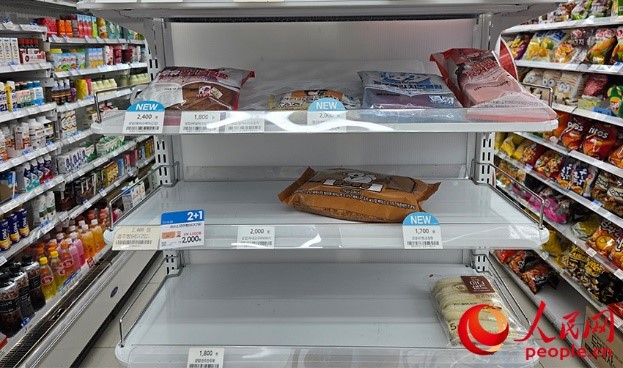 上班高峰時間過后,便利店面包貨架上的商品基本售罄。人民網 李帆攝