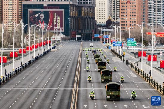 11月28日,運送志愿軍烈士遺骸的車隊經過沈陽青年大街(無人機照片)。 新華社發 (許志康 攝)