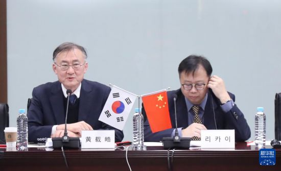 12月2日,在韓國首爾,韓國全球戰略合作研究院院長黃載皓(左)在“紅廳論壇·首爾對話會”上致辭。新華社記者 姚琪琳 攝