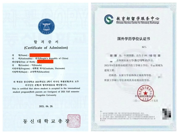 東新大學錄取通知書及中留服國外學歷學位認證書樣本