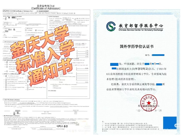國立釜慶大學錄取通知書及中留服國外學歷學位認證書樣本
