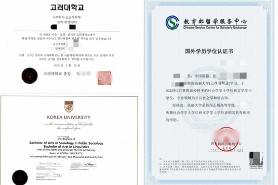 高麗大學學士學位證書及中留服國外學歷學位認證書樣本