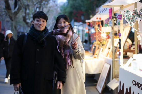 走進豫園商城,韓國游客在街邊品嘗特色美食;站在外灘觀景臺,他們與上海城市天際線合照的身影隨處可見;穿行在新天地冬日市集的攤位間,“思密達”的聲音在耳畔回蕩……