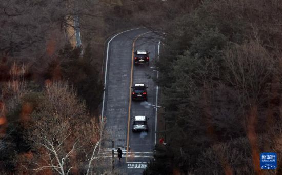 1月3日上午,韓國高級公職人員犯罪調查處工作人員乘坐的車輛駛向首爾龍山區漢南洞的總統官邸。新華社/紐西斯通訊社
