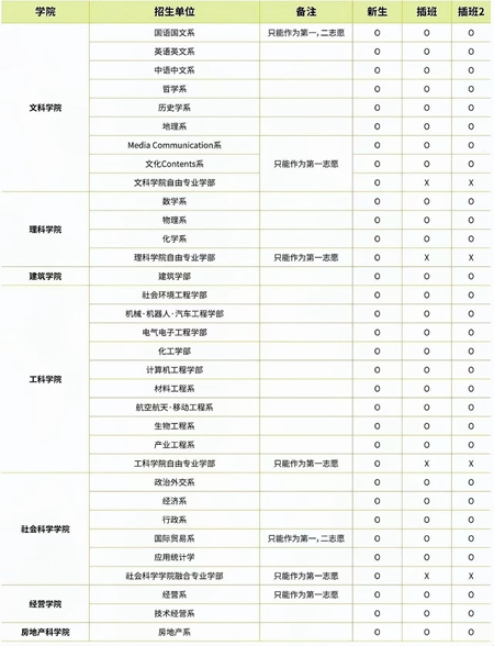 1.國籍資格(新生/插班生共同):本人與父母均為非韓國國籍的外國國籍持有者。
