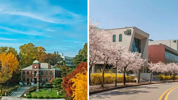 首爾校區校園風光(左)與忠州校區校園風光(右)