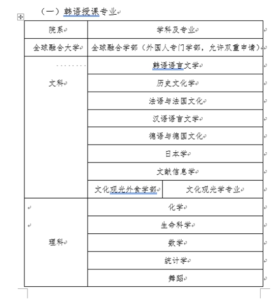 備注:通過外國人選拔錄取入學,父母均為外國人,并通過世界地區核心人才獎學金選拔過程選拔出來的外國學生。