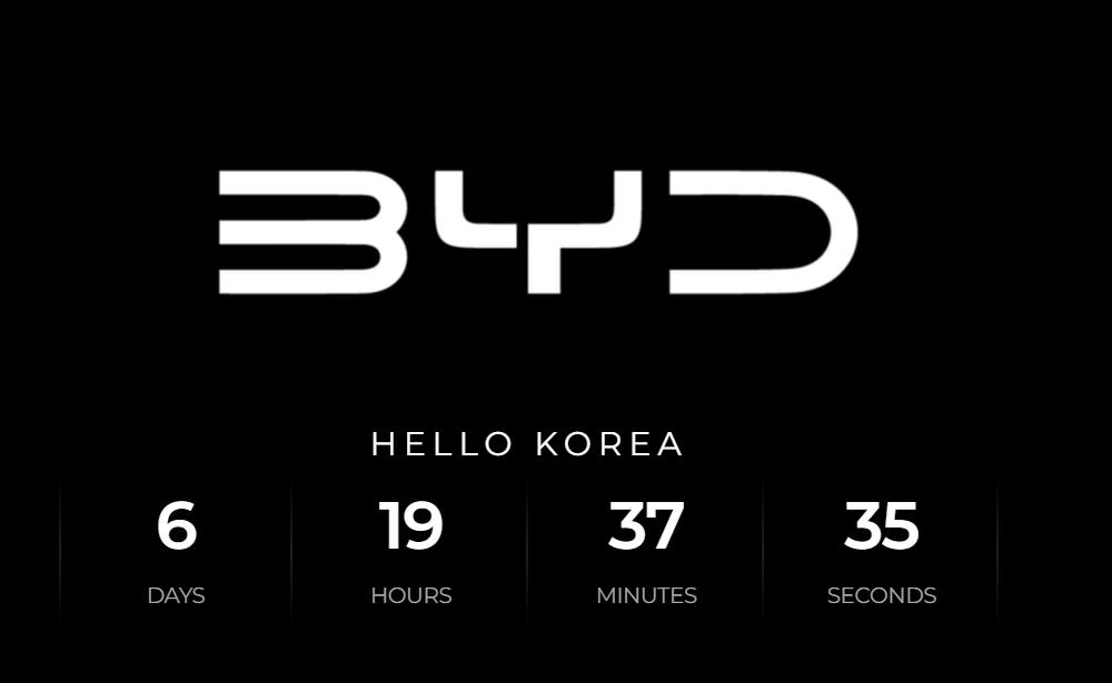 比亞迪韓國官網顯示“你好,韓國”口號,并用數字標示乘用車產品在韓國上市的倒計時。圖源:比亞迪韓國官網截圖
