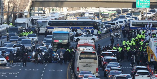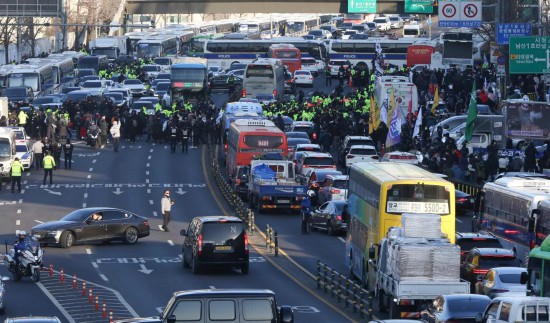 1月15日,警察在位于韓國首爾的總統官邸附近維持秩序。新華社記者姚琪琳攝
