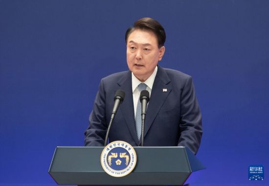 這是2024年5月27日,韓國總統尹錫悅在一場活動上致辭(資料照片)。新華社記者 姚琪琳 攝