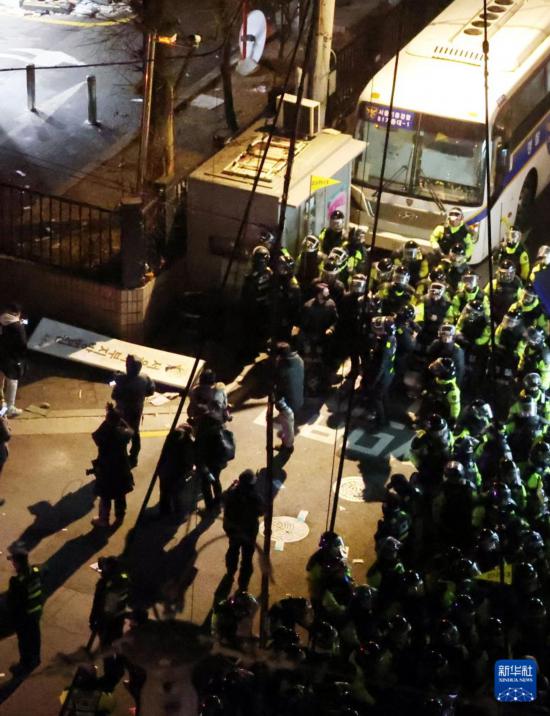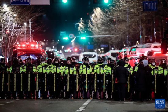 1月19日,韓國警察在首爾西部地方法院附近維持秩序。新華社/紐西斯通訊社