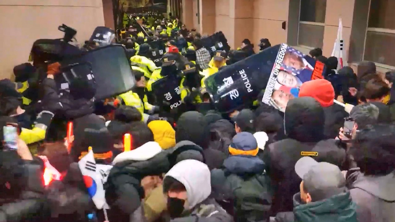拘留令簽發后,尹錫悅的支持者聚集在首爾西部地方法院外,強烈抗議這一決定。他們高舉標語,呼喊口號,表達對司法機構的不滿。據韓媒報道,部分支持者情緒激動,用滅火器等物品砸碎法院建筑的門窗,并試圖闖入內部實施破壞行為。還有支持者搶奪執勤警察的盾牌,與警方發生激烈沖突。沖突過程中,數名警察和抗議者受傷,現場一度陷入混亂。