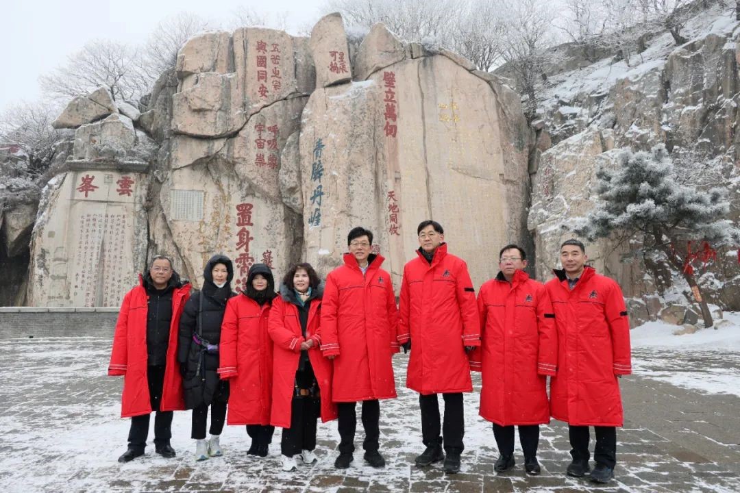 “山東泰山-濟州漢拿山共登友好山”活動參與者在山東泰山合影。中國駐濟州總領事館供圖。