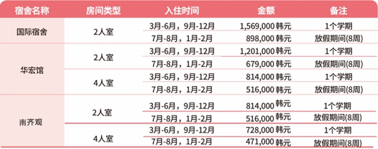 2、學費:710萬韓幣(約合人民幣36500元)/學期,共繳納三學期。