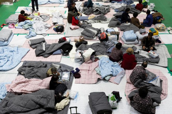 3月27日晚,受災群眾在韓國慶尚北道英陽郡一處避難所過夜。新華社發(全休相攝)