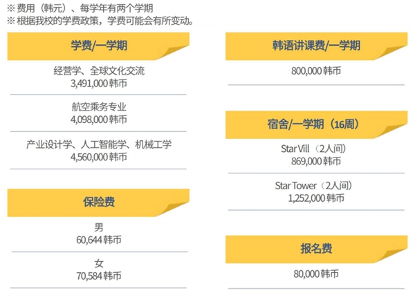 (含1年的學費、報名費、意外保險費、韓國語課程費等,不含食宿費)