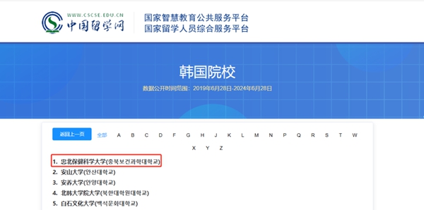?。╉n國忠北保健科學大學受韓國教育部認可。