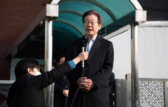 2024年1月10日,李在明遇襲受傷后從首爾大學醫院出院時發表講話。新華社發(全休相攝)