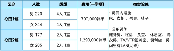 上述金額包括自治會費(20000)韓元及設施保證金(1館10000韓元、2館20000韓元)。