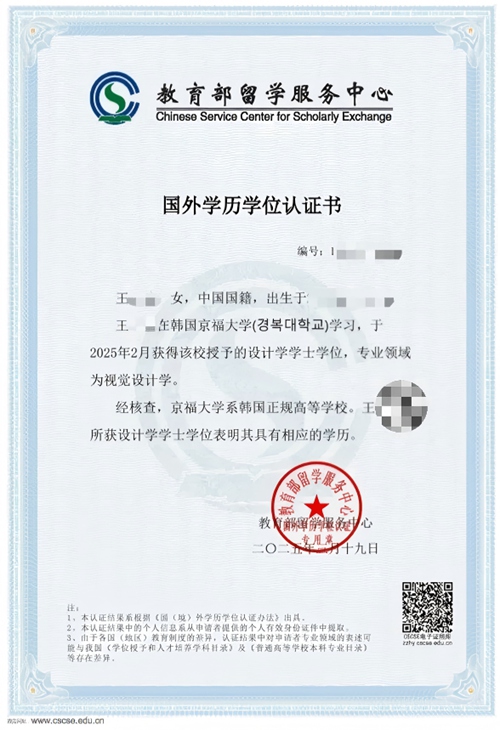 中國留學網是中國留學領域唯一官方網站,所有韓國正規大學均在中國留學網公示查詢。留學學歷在經過認證后,回國就業、保險、職稱、落戶等很多方面發揮和國內大學學位同等效力。