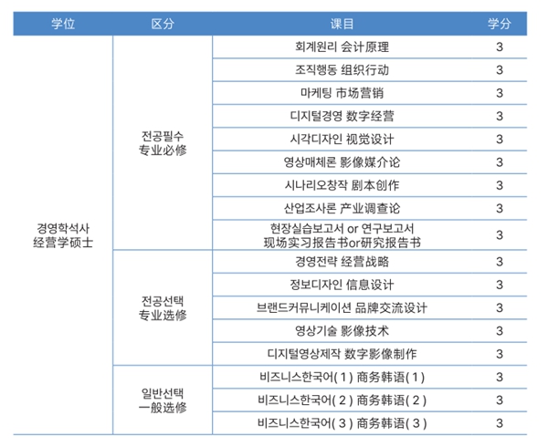 * 入學時,已取得TOPIK4級的學生可申請9學分的專業選修課程,但也可不申請。
