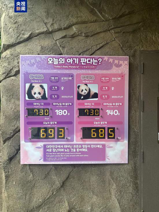 旅韓大熊貓“樂寶”“愛寶”于2016年3月3日抵達韓國愛寶樂園,開始了它們的韓國之旅。2020年7月20日,“樂寶”“愛寶”的長女“福寶”出生。2023年7月7日,“樂寶”“愛寶”的雙胞胎女兒“睿寶”“輝寶”出生,這是在韓國誕生的首對大熊貓雙胞胎。(總臺記者 張昀 唐鑫)
