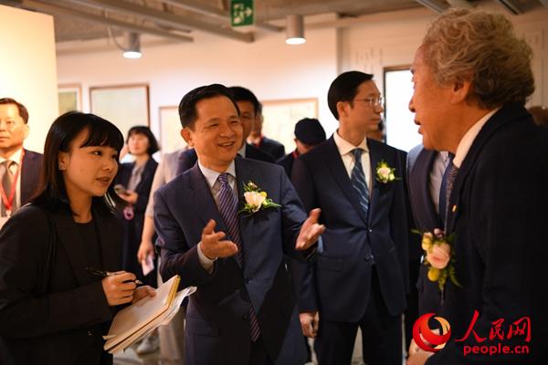 7月7日,中國駐韓國大使戴兵(左二)在展會現場與觀展嘉賓交流。張鍇攝