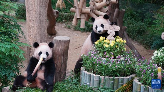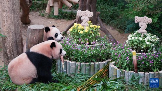 新華社韓國龍仁7月7日電(記者陳怡)在韓國誕生的雙胞胎大熊貓“睿寶”和“輝寶”7日迎來兩周歲生日,韓國愛寶樂園為它們舉行慶生活動。