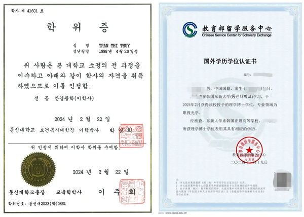 東新大學學位證及中留服國外學歷學位認證書樣本