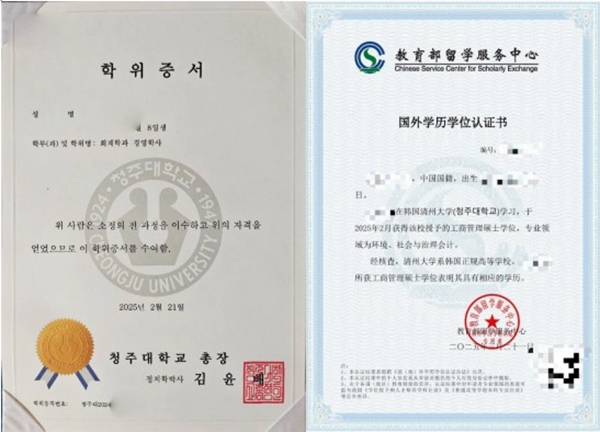 清州大學學位證書及中留服國外學歷學位認證書樣本