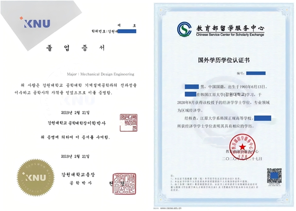 江原大學畢業證及中留服國外學歷學位認證書樣本