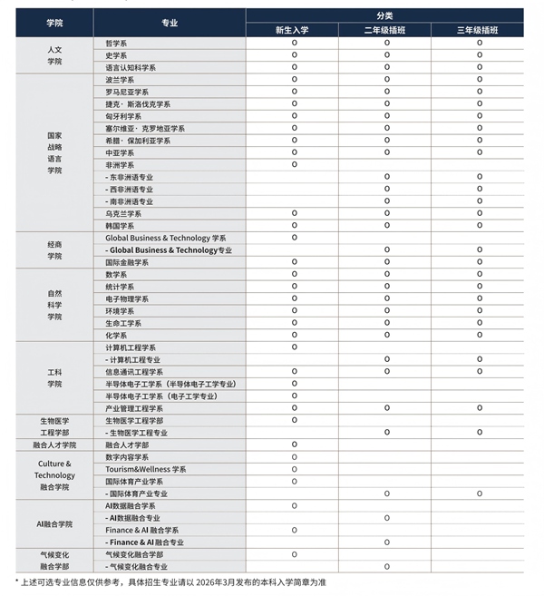 注:招生院系中帶有 *標注的專業為英文授課專業。