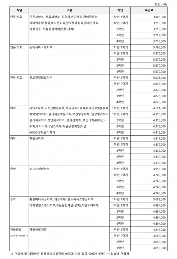 全部申請單位(醫學預科、護理學除外):15萬韓幣,約合人民幣786元