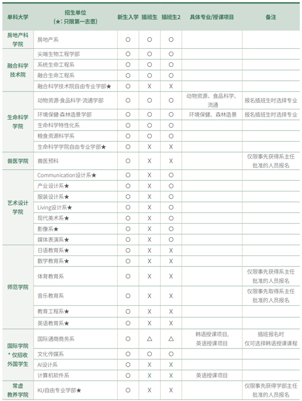 ? KU自由專業學部(無專業)不可選擇的招生單位: