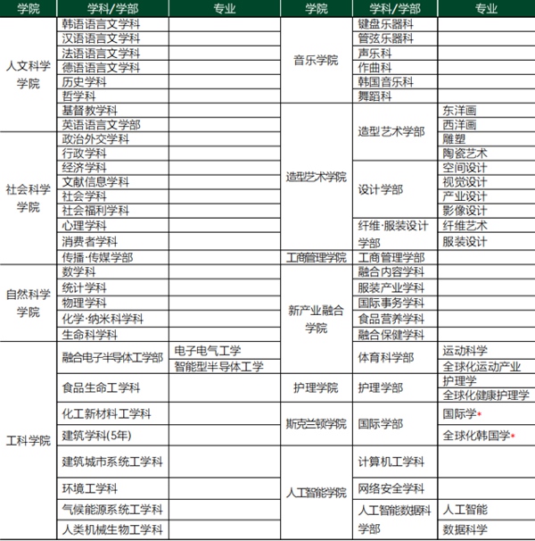 - 從2025年起,所有新生(國際學部和護理學院除外)在入學后的第一學年(兩個學期) 隸屬于HOKMA教養學院全球化學部,并需要完成指定的韓語和基礎教養課程,TOPIK3級以下者將被限制選修專業課程。