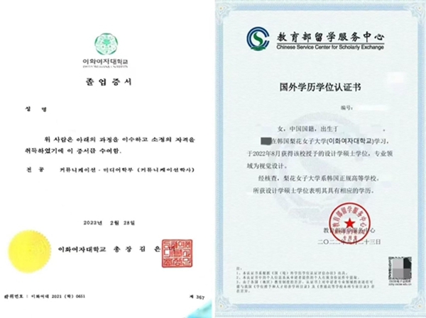 韓國梨花女子大學畢業證及中留服國外學歷學位認證書樣本