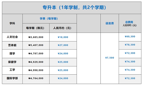?。ǘ╉n語成績要求TOPIK 4級以上(可完成學校規定的韓語100個課時代替韓語成績)