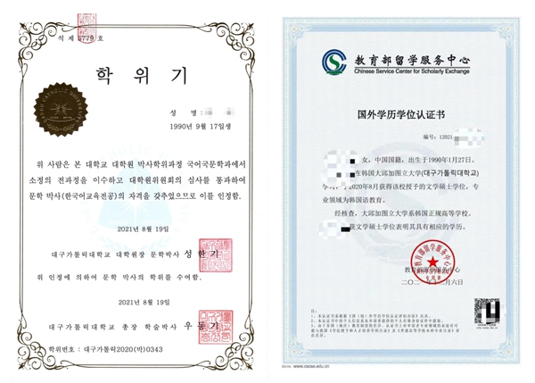 大邱加圖立大學學位證及中留服國外學歷學位認證書樣本