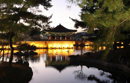這是2024年12月31日在韓國慶州拍攝的景點“東宮和月池”。新華社記者姚琪琳攝