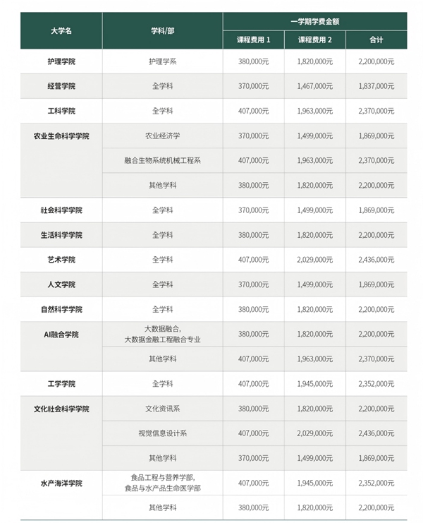 注:僅供參考,實際費用金額以官方簡章或繳費通知單為準。