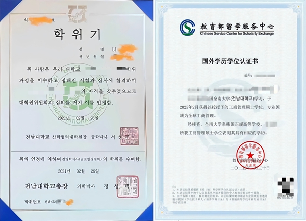 全南大學學位證及中留服國外學歷學位認證書樣本