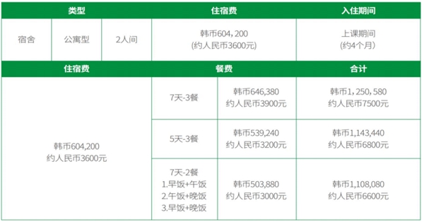?。ㄒ唬W費:4,736,000韓幣(約合人民幣24300元)/學期