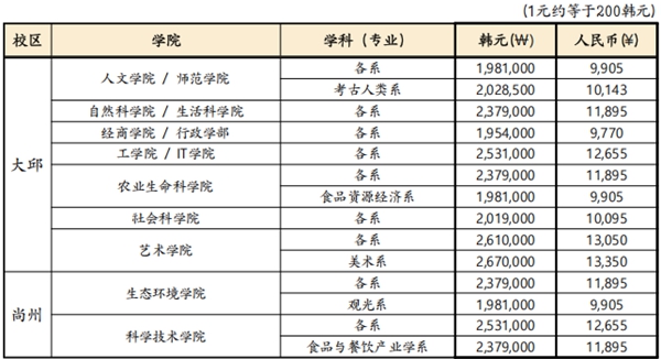 韓國慶北大學尚州校區招生專業