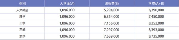 * 藝術媒體融合系-聲樂專業:120,000韓幣(約631元人民幣)
