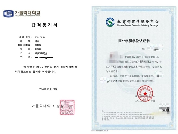 加圖立大學錄取通知及中留服國外學歷學位認證書樣本