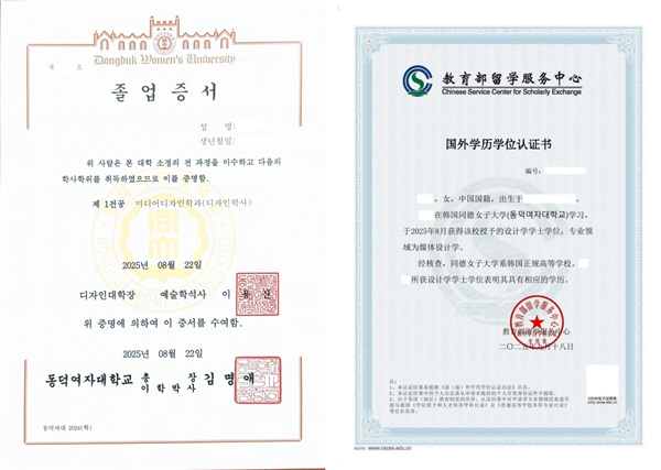 同德女子大學畢業證及中留服國外學歷學位認證書樣本