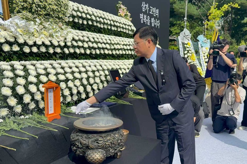 2024年京畿道華城電池廠火災事故中,造成23人遇難,其中17名中國公民。事故發生后,不僅牽動著遇難者家屬的心,也深深揪著使館每一位同志的心。從大使到一線負責的領事官員,好幾個白天黑夜,奔走于華城事故現場,與韓方各部門反復溝通協調,同一戶戶悲痛、焦急的家屬商討應對和善后事宜,赴靈堂吊唁亡者。我們始終與每一位遇難者家屬站在一起,懷著深切的同情與悲憫,盡力幫助他們度過難關。