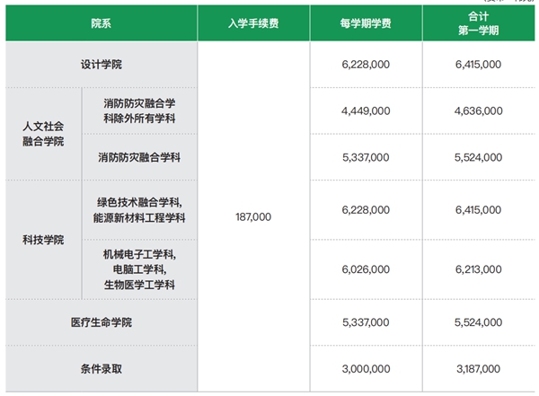 ?。ㄒ唬┤雽W金:187,000韓幣(約合940元人民幣,僅入學時繳納一次)