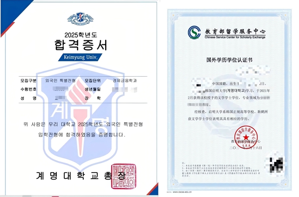 韓國啟明大學錄取通知及中留服國外學歷學位認證書樣本