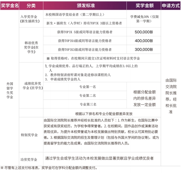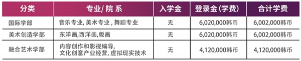 ?。ㄋ模┱Z言要求:國際學部和美術創作學部的申請者未取得TOPIK3級,則需要學習國際交流院韓國語學堂,必須完成強化課程300小時(聽課費另計);融合藝術學部需要TOPIK3級